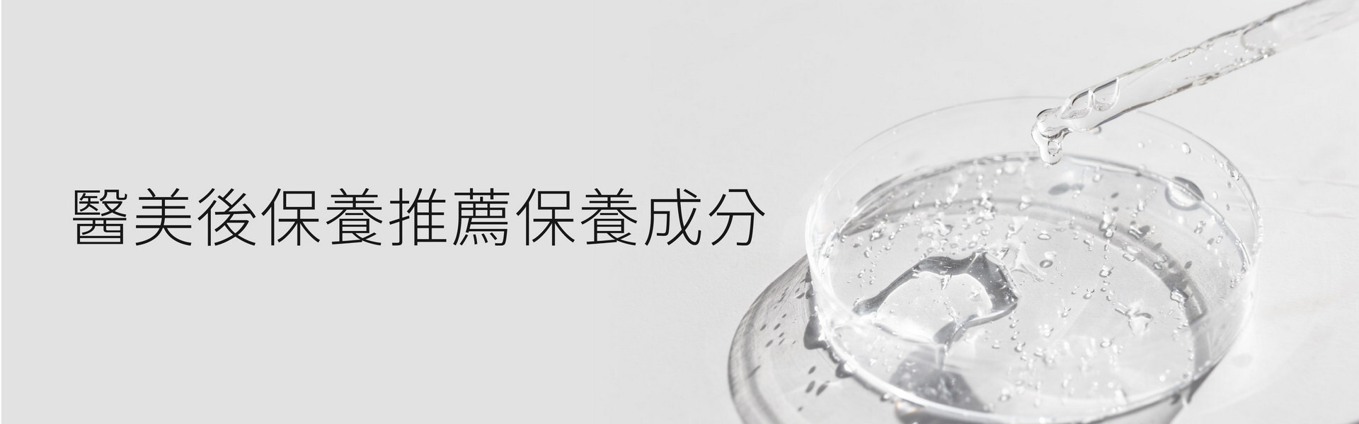選擇成分單純、具修復、保濕及抗氧化效果的產品為主,可能使醫美術後的肌膚及時獲得必要的協助及提供適當保護 ,選擇成分著重以下三大功能。