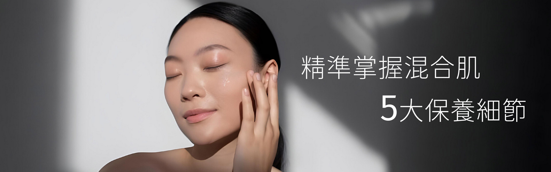 許多人都有混合肌的困擾,也就是臉上某些T字部位偏油容易毛孔粗大、某些兩頰和眼周部位卻乾燥,需要加強保濕與滋潤。這類膚質的保養重點在於「分區調理」,針對不同區域給予最適合的照護,讓臉部各個區域都達到油水平衡,有效改善混合肌膚質,使肌膚恢復健康與光澤。