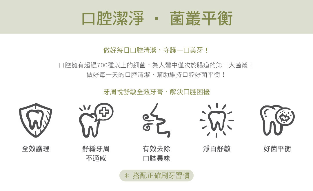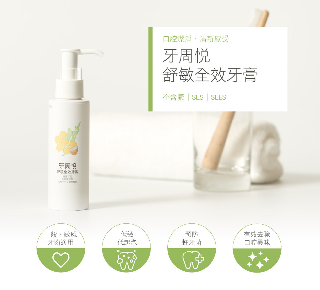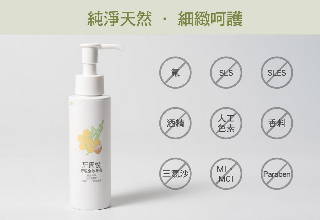 牙膏是天天使用商品,應特別著重其成份友善,才能降低牙周受損機率,是健康全口牙齒必要之道