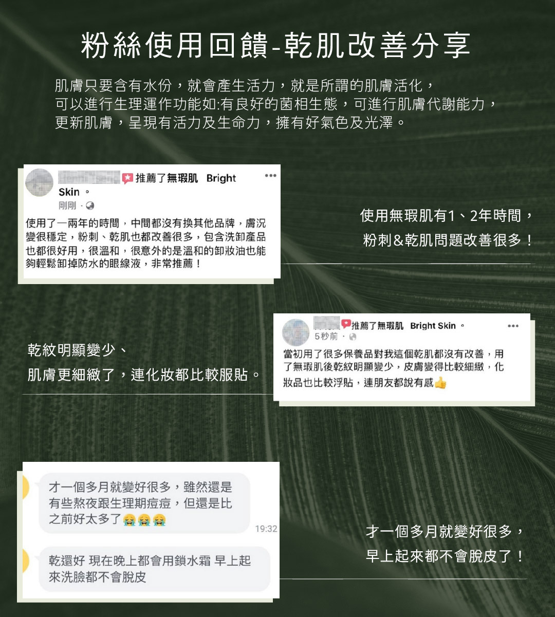 2.乾肌保養:有感保溼,賦活肌膚滋潤含水,減緩乾渴粗糙、顆粒不平整,乾感緊繃,