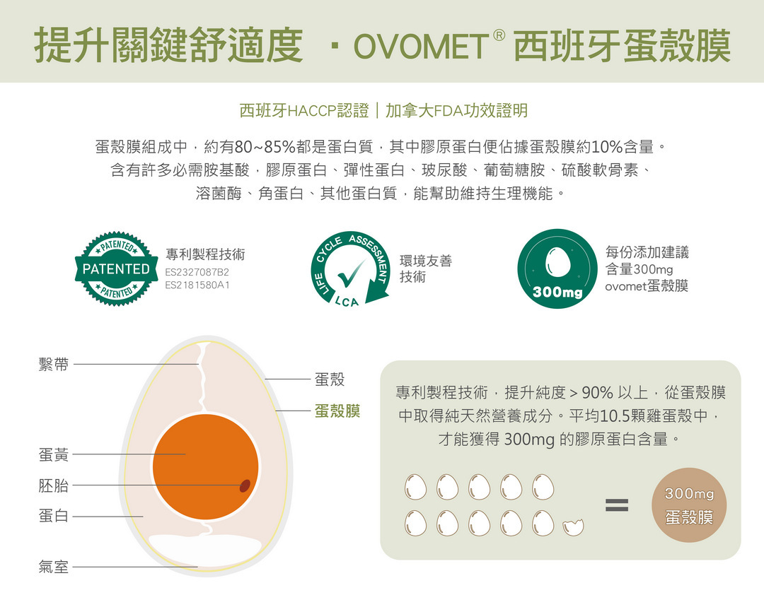 ☑ OVOMET®蛋殼膜—其效果為UC-II的2倍