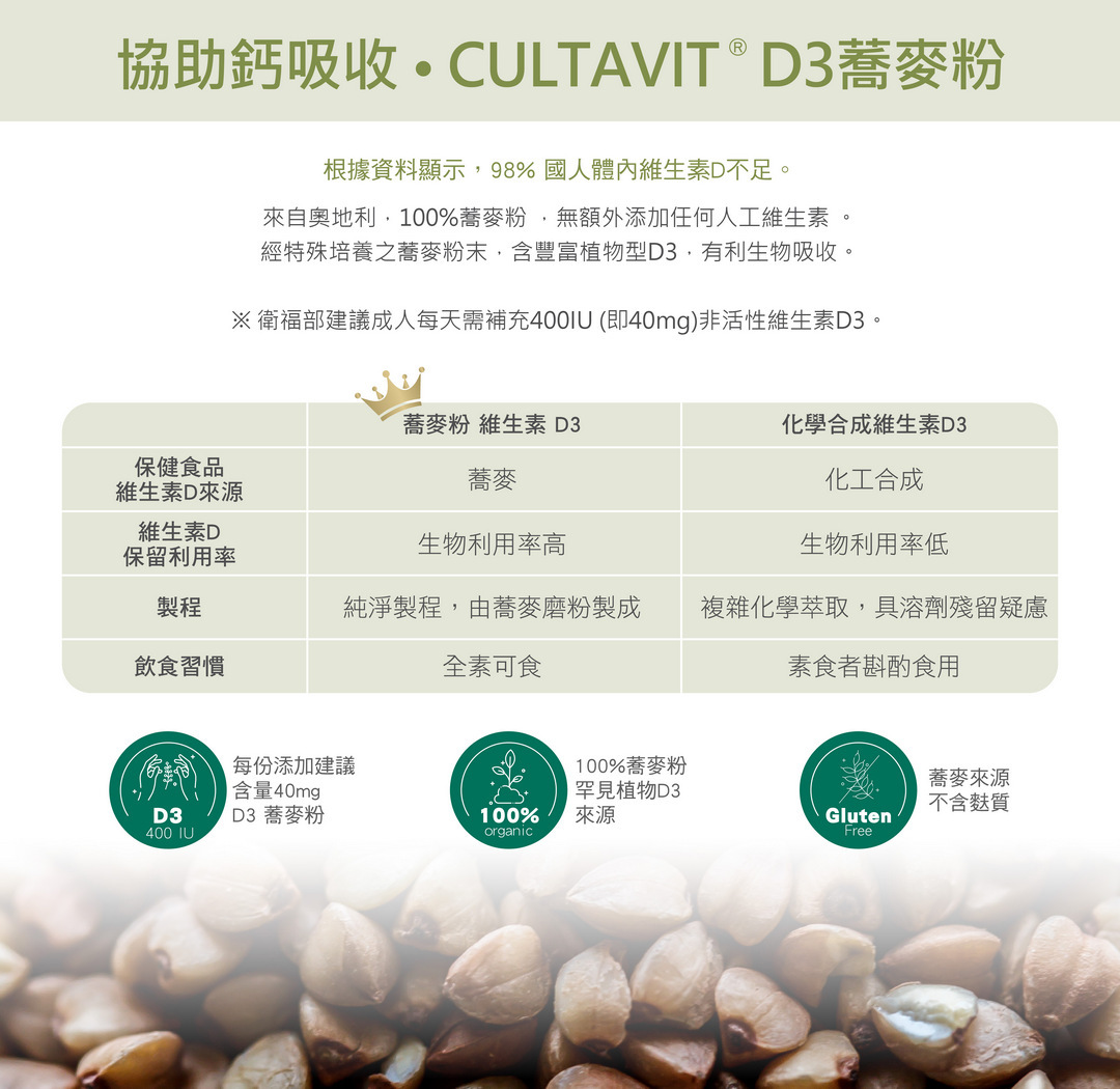 ☑ CULTAVIT D3蕎麥粉—植物來源,幫助鈣吸收