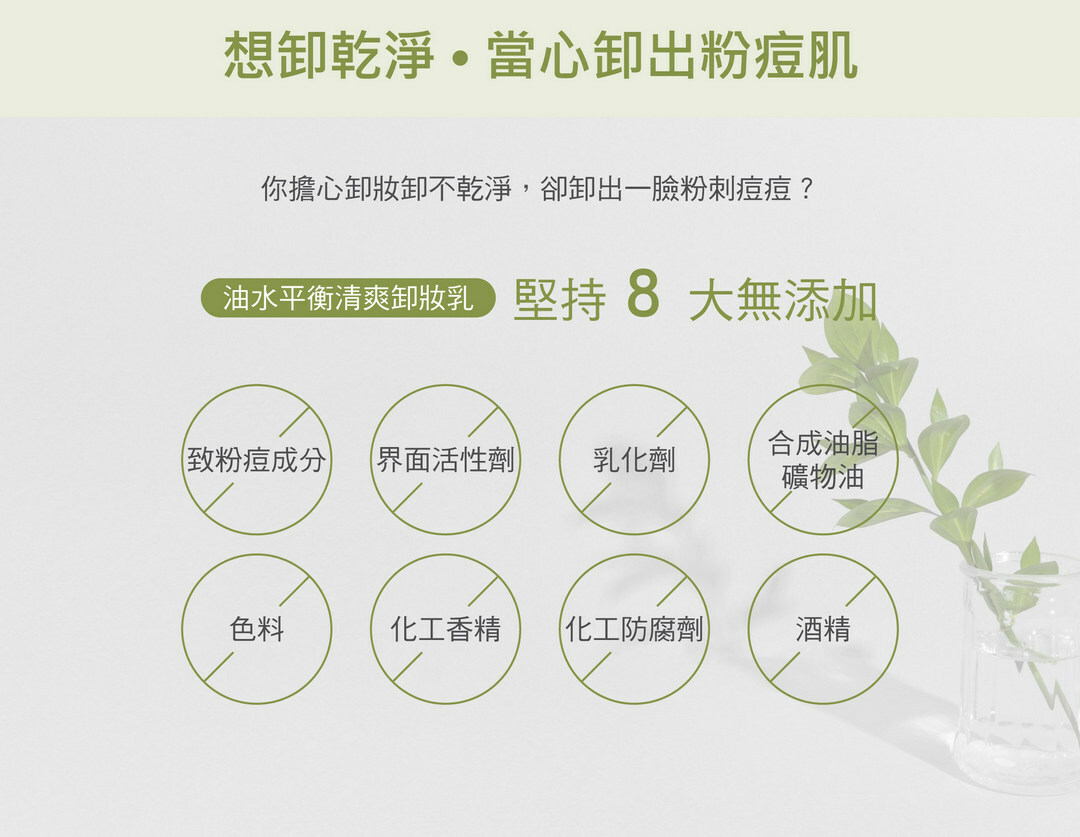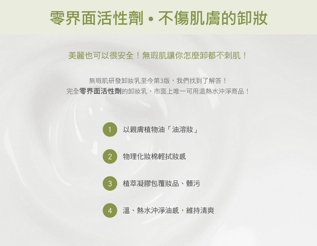 ---護膚設計--少了乳化劑 ,滿足1.完全卸妝,2.清爽潔淨,3.肌膚健康,4.油水平衡
