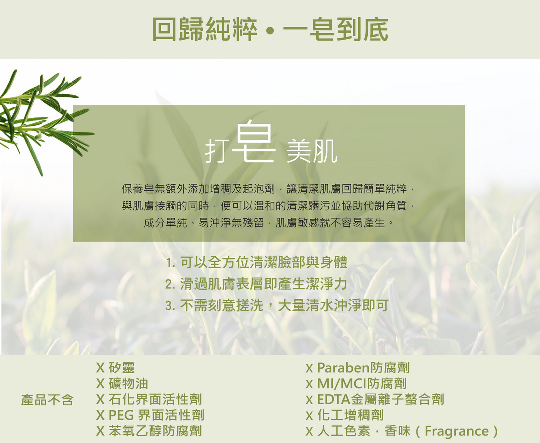 --- "輕洗”-不可用力刷洗、不殘留粘滑感,維持原生健康膚感。